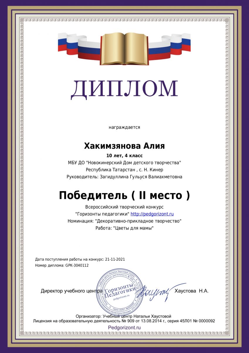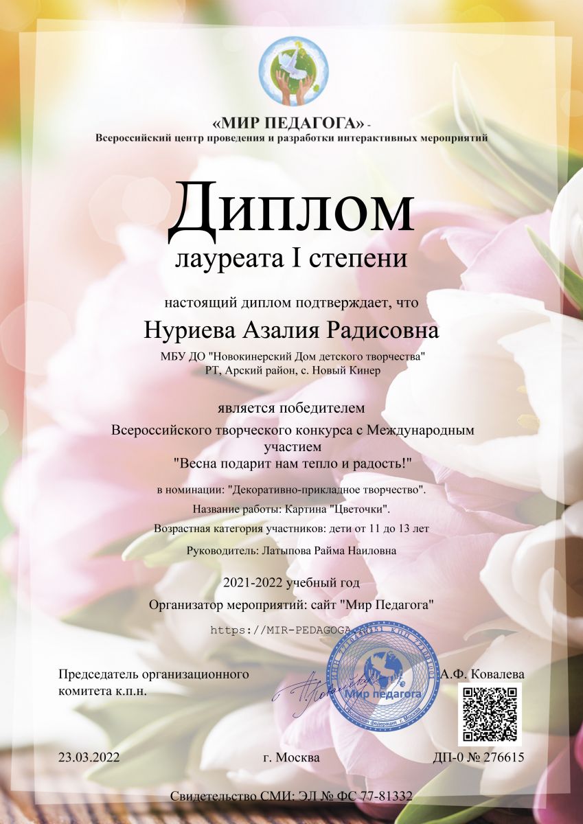 | Руководитель: | Камалиева Гульчачак Мансуровна |
