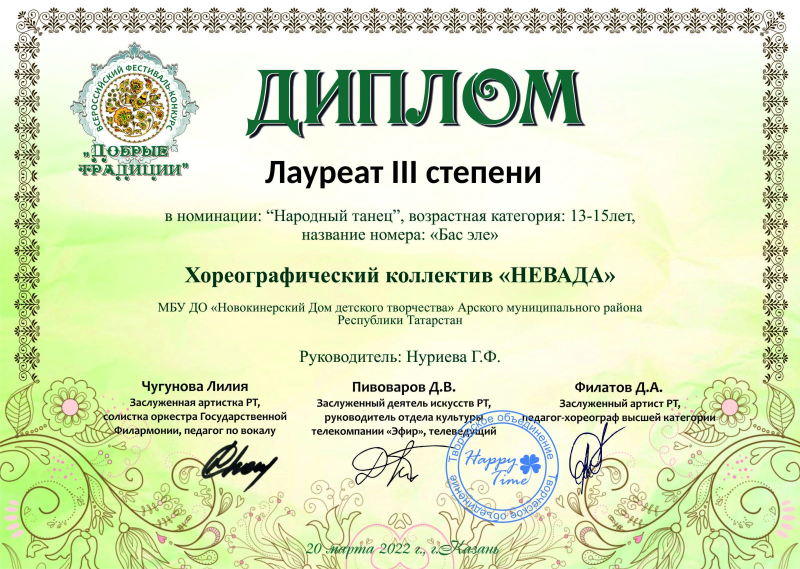 Диплом лауреата 3 степени - "Добрые традиции" (коллектив)