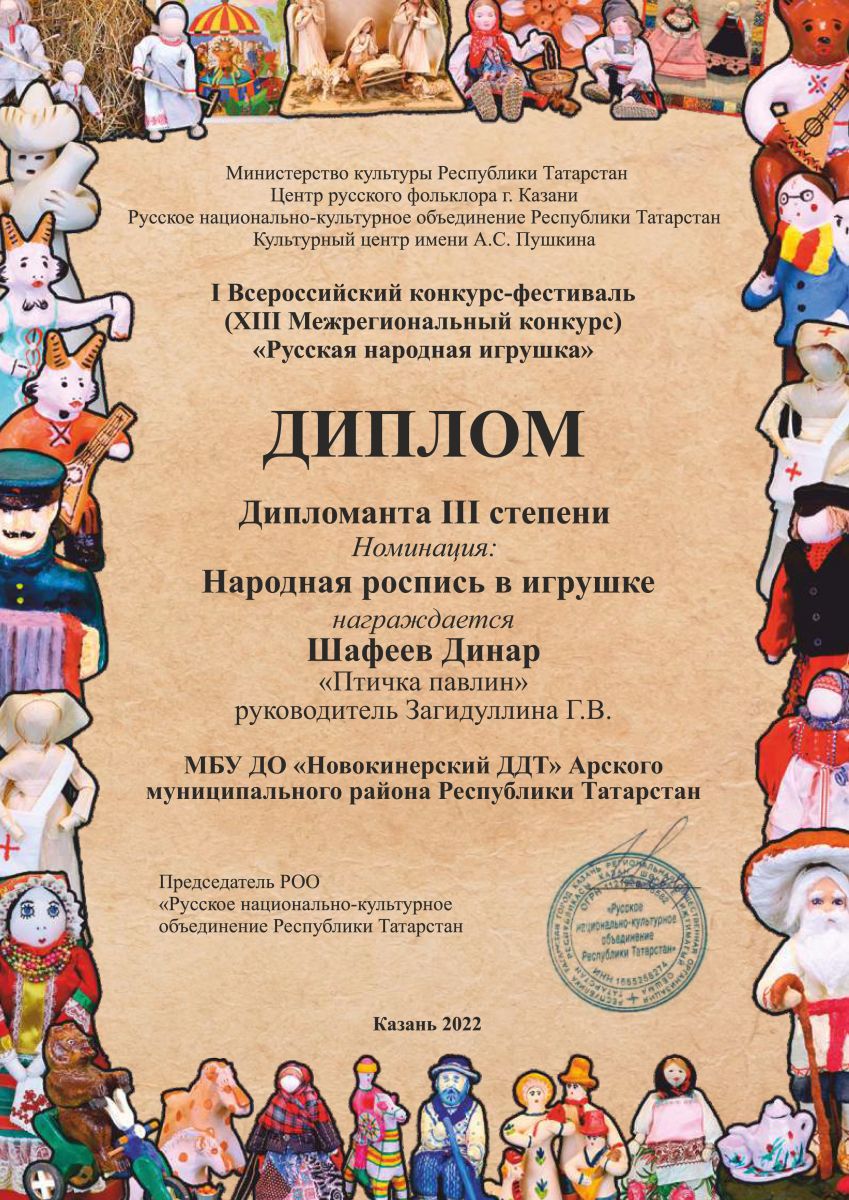 Диплом дипломанта 3 степени - "Русская народная игрушка"