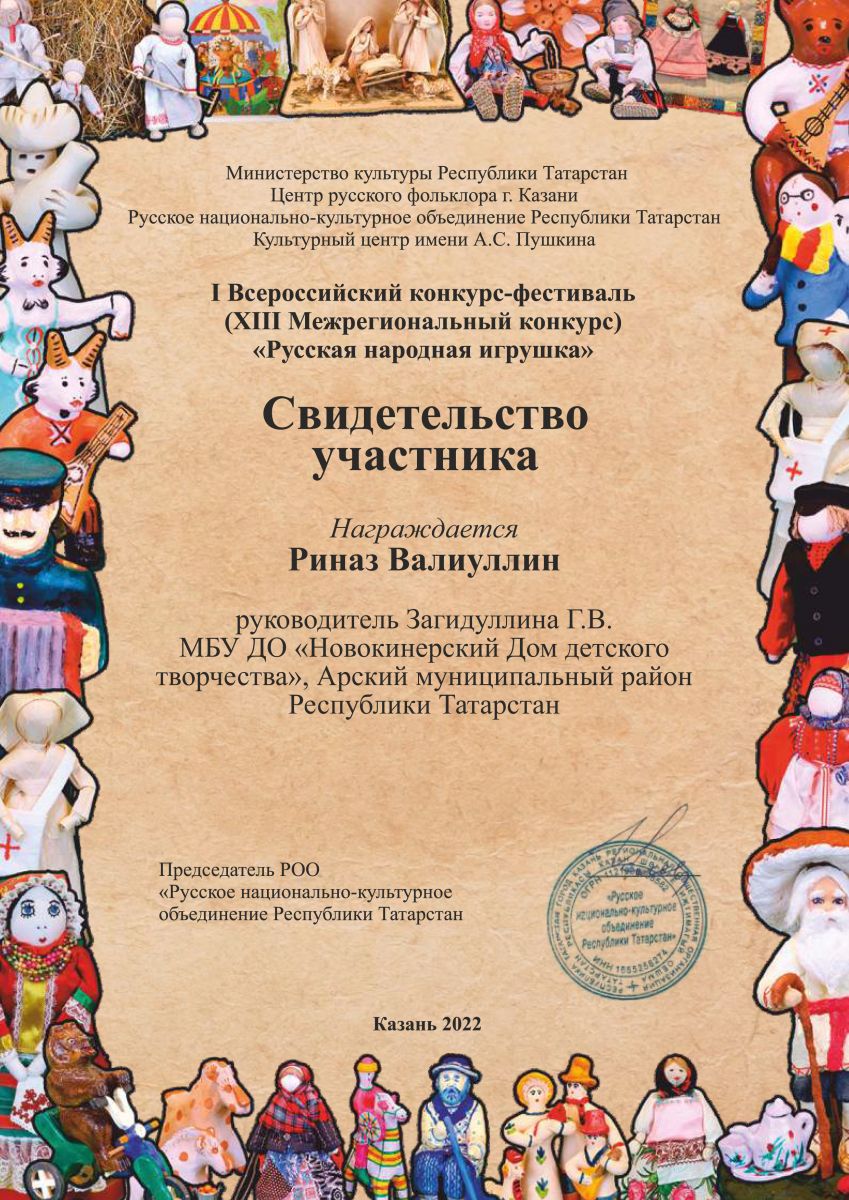 Свидетельство участника - "Русская народная игрушка"