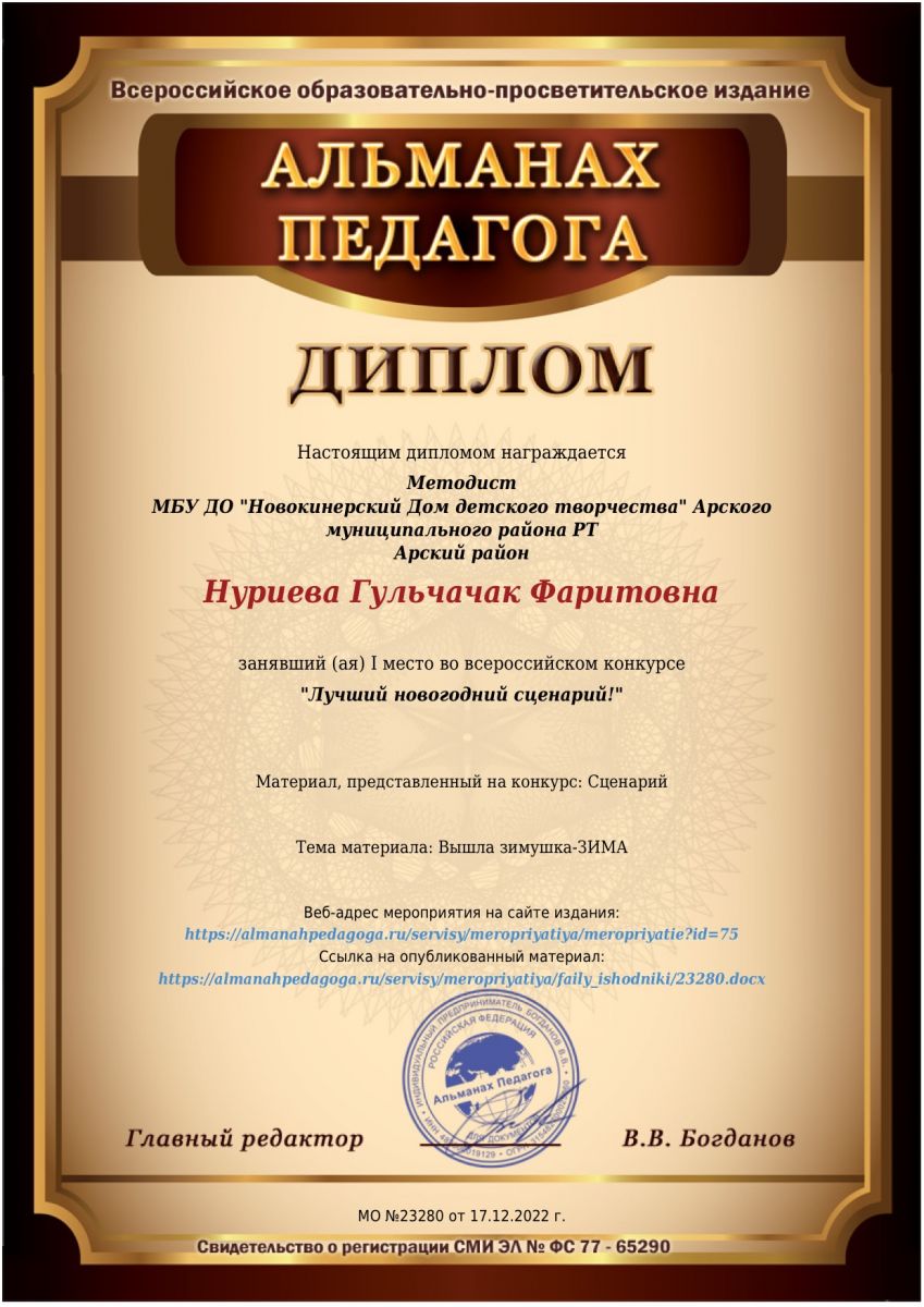 | Руководитель: | Камалиева Гульчачак Мансуровна |