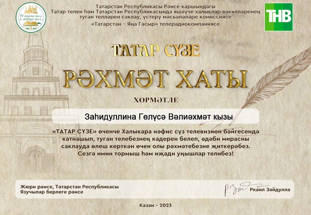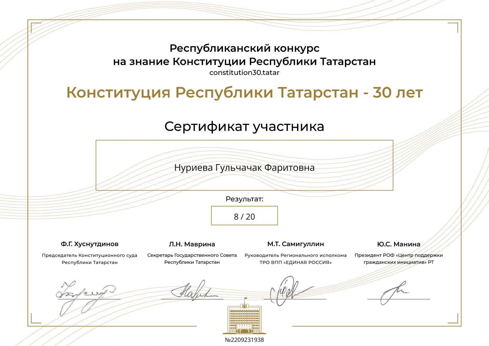 Сертификат участника - Конституция Республики Татарстан 30 лет
