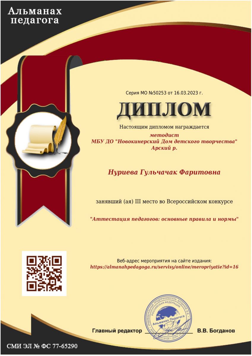 Диплом 3 степени - "ПедЭксперт Март2023"