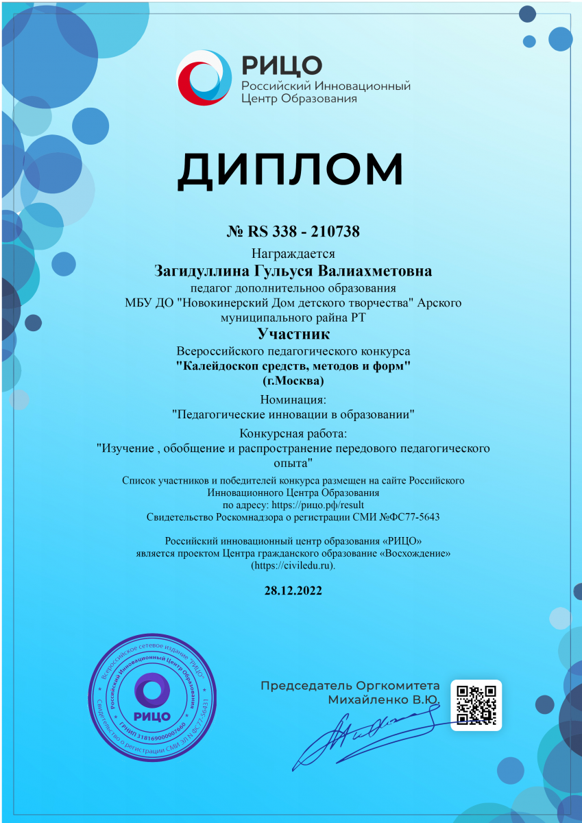 Диплом участника - "Колейдоскоп средств, методов и форм"