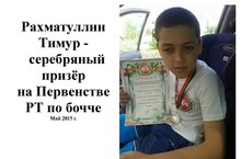 С 29 по 31 мая 2015 года в селе Черемшан прошло первенство Республики Татарстан по бочче среди детей- инвалидов с поражением опорно-двигательного аппарата. Из Арского Дворца школьников в данных соревнованиях участвовали Сунгатуллина Зиля, Шакирова Ралина, Рахматуллин Тимур. Рахматуллин Тимур занял 2 место. Тренер команды - Минхаиров Фарит Фатхиевич.
