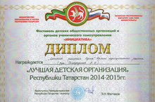 Арская детская районная Дума награждена дипломом "Лучшая детская организация Республики Татарстан 2014-2015 г." в рамках Фестиваля детских общественных оргнизаций и органов ученического самоуправления "Инициатива".