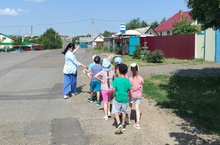 С воспитанниками старшей группы детского сада была организована экскурсия к автобусной остановке. Воспитатель Лейля Исраилжановна наглядно закрепляла знания детей о правилах дорожного движения, о дорожных знаках, о правилах поведения в общественном транспорте и на улице.