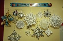 Зима… Мороз, деревья в кружевах из «серебра», на речке - ледяной мост. А с неба медленно падают снежинки сказочной красоты. Ловишь их на ладошку, любуешься их неповторимой красотой, но только пока они не растаяли… А хочется, чтоб снежинки не таяли и в тёплом уютном детском саду, поэтому с целью развития творчества и привлечения родителей к совместному труду с детьми, был объявлен конкурс «Новогодняя снежинка». Нужно было сделать объемную снежинку из бумаги.