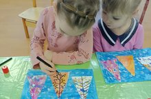 Өлкән төркем балалары кичке вакытта рәсем ясарга бик яраталар .Ә Яңа ел алдыннан балалар иҗатында иң яраткан һәм популяр темаларның берсе-кышкы пейзаж рәсеме. Балалар карандашлар, фломастерлар, буяулар ,төсле ручкалар белән рәсем ясыйлар. Әмма бүген алар рәсем ясау һәм аппликацияне бергә берләштерделәр . Беренче этапта ике биттән кәгазьне буядылар һәм зәңгәр һәм төрле төстәге фон алдылар. Аннары зәңгәр фонда мамык таякчыклары һәм ак буяулар ярдәмендә кар бөртекләре ясадылар, ә икенче биттән агач кистеләр һәм зәңгәр фонга ябыштырдылар. Менә шундый әкияти кышкы урман барлыкка килде.