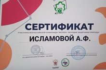 Прошёл конкурс "Я говорю и работаю по - татарски -2020". Конкурс проходил среди работников системы дошкольного образования, цель которого повышение профессионального мастерства и распространение опыта. Педагог - психолог нашего детского сада Журавлёва Алла Викторовна была награждена дипломом II степени.