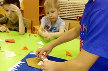 Дети подготовительной к школе группы №1 тоже с интересом занимаются по технике оригами. Сложив из бумаги маски животных, дети включаются в игру-драматизацию по знакомой сказке, становятся сказочными героями, совершают путешествие в мир цветов и т. д.