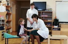 Не все дети спокойно переносят посещение поликлиники, особенно визит к врачу. У многих детей рождается страх перед белым халатом. Как можно помочь ребёнку не пугаться того, что связано с больницей? Один из способов – организовать детям встречу с врачом и медсестрой в привычной для детей обстановке. С белым халатом, с медицинскими приборами, всё как полагается… А если врач и медсестра - мамы твоего друга, тогда совсем не страшно, а очень даже интересно.