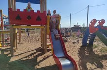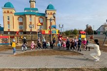 На улице Н.Сафина летом была обустроена детская игровая площадка . Сегодня дети подготовительной к школе группы посетили спортивную площадку.