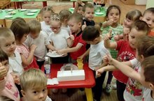 Сегодня в старшей группе №1 организовали игру «Какое слово правильно?». Услышав неправильное слово дети должны были поднять красный кружочек, услышав правильное слово поднять зеленый кружочек. Игра «Назови слово» тоже заинтересовала детей. Поймав мяч, дети должны были вернуть его обратно, образовывая слова при помощи уменьшительно- ласкательных суффиксов.