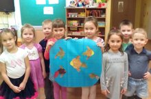 Сегодня дети подготовительной к школе группы сделали из засушенных листьев деревьев аквариум с рыбками. Опираясь на своеобразие формы, окраски сухого листочка, дети должны были увидеть в нем рыбку. Для большего сходства мелкие детали вырезались из цветной бумаги и наклеивались на поделку. Получилось очень красиво!