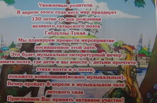 В апреле весь мир празднует 130-летиесо дня рождения великого татарского поэта Г.Тукая. Мы планируем провести музыкально-литературный вечер памяти поэта.