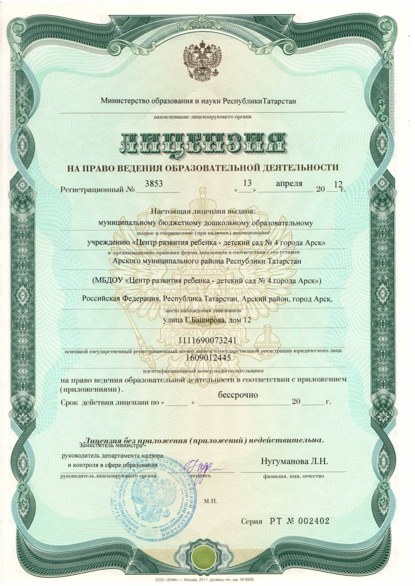 Муниципальное бюджетное дошкольное образовательное учреждение «Центр развития ребёнка - детский сад №4 города Арск» Арского муниципального района Республики Татарстан -Татарстан Республикасы Арча муниципаль районы "Бала үсеше үзәге - Арча шәһәре 4 нче балалар бакчасы" муниципаль бюджет мәктәпкәчә белем учреждениесе