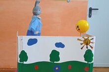 Мәктәпкә әзерлек төркеме балалары кече яшьтәге балаларга "Кабартма" әкиятен курчаклар ярдәмендә күрсәттеләр.