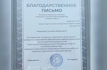 Благодарственное письмо Региональной общественной организации " Физкультурно-спортивное общество Буревестник" РТ 17.11.2022