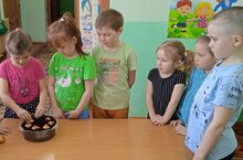 Бүген әйләнә-тирә шөгылендә балалар суган утырту кагыйдәләре белән танышылар. Үзләре кипкән яфракарын кисеп суган утыртып карадылар. Суган кыяк чыгарсын өчен, аңа - су, яктылык, кояш кирәклеген эйттеләр. Суган үсентеләрен тәрәзә төбенә куеп, ничек үскәннәрен күзәтеп, сулар сибеп торырга кирэк диделәр. Тиздән суганнар кыяклар чыгарып үсеп китәрләр һәм бакчабызга жәй яме биреп торачаклар.