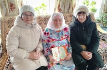 Тыл ветераннары Сәйфуллина Ингелсина, Ахмадуллина Назирә һәм Мусина Бибигатифә апаларны язның беренче бәйрәме - 8 Март - Халыкара хатын-кызлар көне белән котладык
