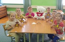 Зурлар хэм мэктэпкэ хэзерлек торкеме балалары аппликация шогылендэ ак аюга дуслар табарга ярдэм иттелэр. Ак аюнын дуслары булганга балалар да бик куандылар.