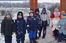 Саф һавада уйнавы бик рәхәт.Балалар кар яуганга сөенеп кар бабай да ясадылар.