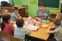 Зурлар һәм мәктәпкә әзерлек төркеме балалары әйләнә-тирә белән танышу шөгылендә тукыма төрләре белән таныштылар, аларны чагыштырып карадылар һәм кайсы тукымадан нәрсәләр тегеп булганын белделәр.