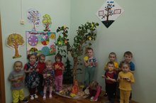 Әйләнә тирә белән танышу шөгылендә кечкенәләр төркеменә йөрүче балалар "Туган ягыбызга көз килде" темасы белән таныштылар, табигать почмагында алтын көзгә әйләндереп бизәп куйдылар