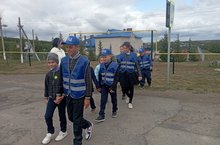 1 нче сыйныф укучыларын 3-4 нче сыйныф укучылары юлда үзләрен дөрес тотарга өйрәттеләр.