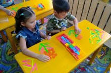 Развивающие: Развивать у детей чувство композиции, аккуратность при наклеивании деталей, творческие способности детей. Совершенствовать мелкую моторику рук, развивать глазомер.