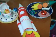 Началась усиленная подготовка к полету в космос. Каждый ребенок самостоятельно готовит снаряжения.