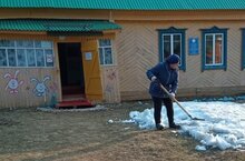 Раскидывание снега на участке ДОУ 04.04.2023