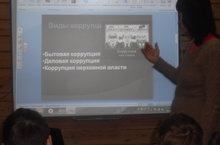 В рамках Международного дня борьбы с коррупцией 06.12.2016 Сегодня учитель истории и обществознания Зарипова Г.Ф. провела классный час «Коррупция. Причины и формы коррупции».Цель: познакомить учащихся с таким социально - экономическим явлением как коррупция, развивать осознание необходимости соблюдать законы государства. Используя словари, интернет источники учащиеся дали правильное толкование определению «коррупция». Обсудили вопрос: чем опасна коррупция (в экономике, политике, социальной сфере).