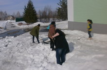 Сегодня учащиеся очищали территорию школы от сугробов.