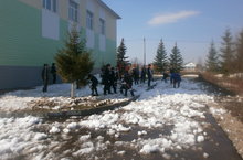 Средник в школе. Учащиеся сегодня вышли раскидывать снег по территории школы.