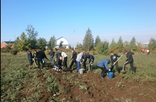 Сегодня в школе день уборки картофеля. Учащиеся 7-11 классов были задействованы в уборке урожая картофеля. И стоит отметить, что картошка в этом году была отменная.. Было собрано огромное количество мешков урожая.