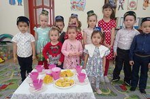 "Туган телем сагында"акциясе дәвам итә.Бүген без балалар белән татар халкының милли ризыклары турында сөйләштек."Капкалы җырлы-биюле уенын өйрәндек.