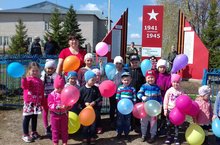 9 май Бөек Җиңү бәйрәме.Без Җиңү бәйрәме уңаеннан мәктәп укучылары һәм мәдәният хезмәткәрләре оештырган тантаналы митингны карарга бардык.