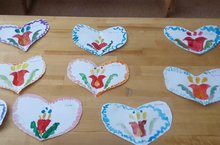 Кисеп ябыштыру элементларын файдаланып "Валентинка" ясау.Хохлама бизәкләре һәм татар орнаменты үрнәкләренә карап,симметрияле формада бизәкләр төзергә өйрәтүне дәвам итү.Бизәкне формада урнаштыру ысулын сайлаганда,композиция тоемлау хисен үстерү.