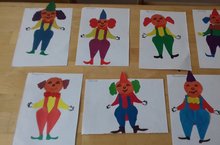 Бүген без кисеп ябыштыру эшчәнлегендә кызыклы клоуннар ясадык.Ә алар берсеннән -берсе кызыклырак килеп чыкты.Без үзебезне циркта итеп хис иттек.