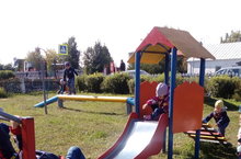Шөгельләрдән соң көзге кояш безне саф һавада уйнарга дәште.Без төрле-төрле буяулар белән матур итеп буялган уен мәйданчыгына чыктык.