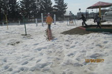 Табигатькә яз көннән- көн ныграк үтеп керә бара.Кичә генә кар астында булган уен мәйданчыгыбыз да ак кардан арынып килә.