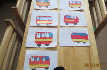 Бу куяннар нинди транспортка утырып кая баралар икән?-дип аптырамагыз.Трамвайга утырып шәһәр белән танышып йөрүче куяннар бит алар.Без аларны төсле кәгазьләрдән кисеп шулай матур итеп ябыштырып куйдык.