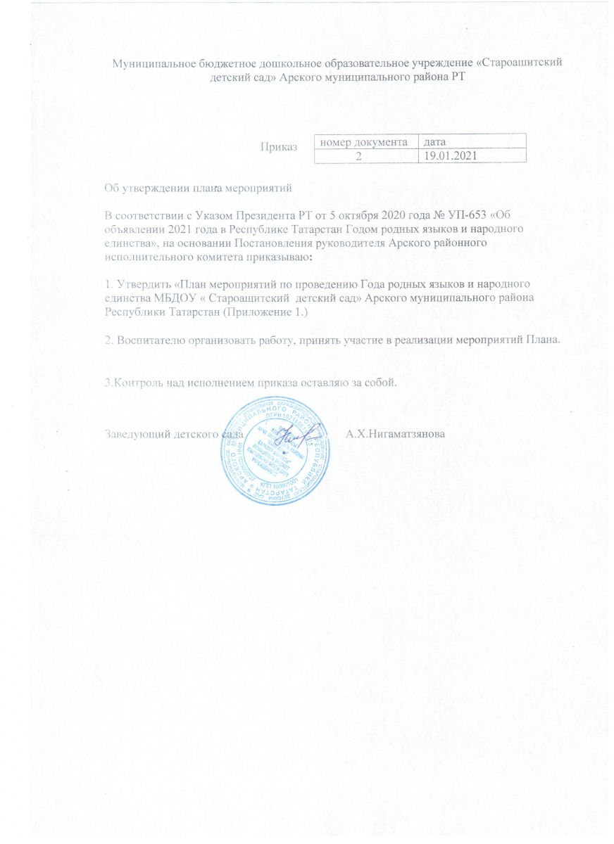 Приказ " О проведении мероприятий приуроченных к Медународномудню родного языка"