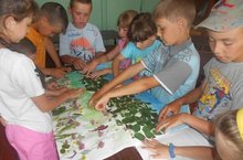 Бугенге көнебез хезмәткә багышланган иде. Шушы темага багышлап без табигый материаллардан эшкәртмә эшләдек. Ике отряд та тырышып эшләде.