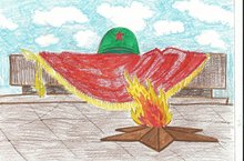 9 нчы сыйныф укучылары өмәдә. укучылар якынлашып килүче бәйрәмгә әзерләнәләр. Обелиск тирәләрен чүптән арындыру эше гөрли.