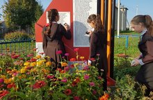 Көзге мәрхәмәтлелек атнасы дәвам итә. Бүген 7 нче класс укучылары авылыбыз уртасындагы һәйкәлнең тирә - ягын тәртипкә китерделәр.