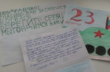 Рисунки и письма с поздравлениями с Днем защитников Отечества для наших солдат, несущих службу в зоне спецоперации.