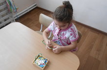 Индивидуальная работа по развитию мелкой моторики рук. Малышам очень нравятся игры-шнуровки. Индивидуальные занятия воспитатель Мурысина Е.Л. проводит практически каждый день.